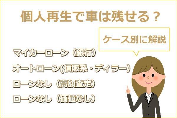 そして、ローンがなくても車を残せても、査定が高額になるケースは個人再生後の返済額に影響することがあります。
